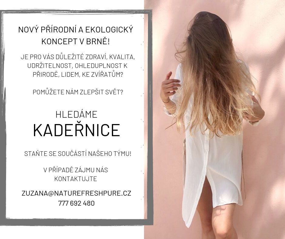 Hledáme šikovné kadeřníky do nového přírodního a ekologického konceptu. Buďte mezi prvními v Brně, podpořte zdravou, přirozenou a udržitelnou krásu a staňte se součástí našeho týmu! Budete proškoleni pro práci s přírodní profesionální vlasovou kosmetikou. Práce na ŽL.Zajímá Vás více informací? Kontaktujte nás!