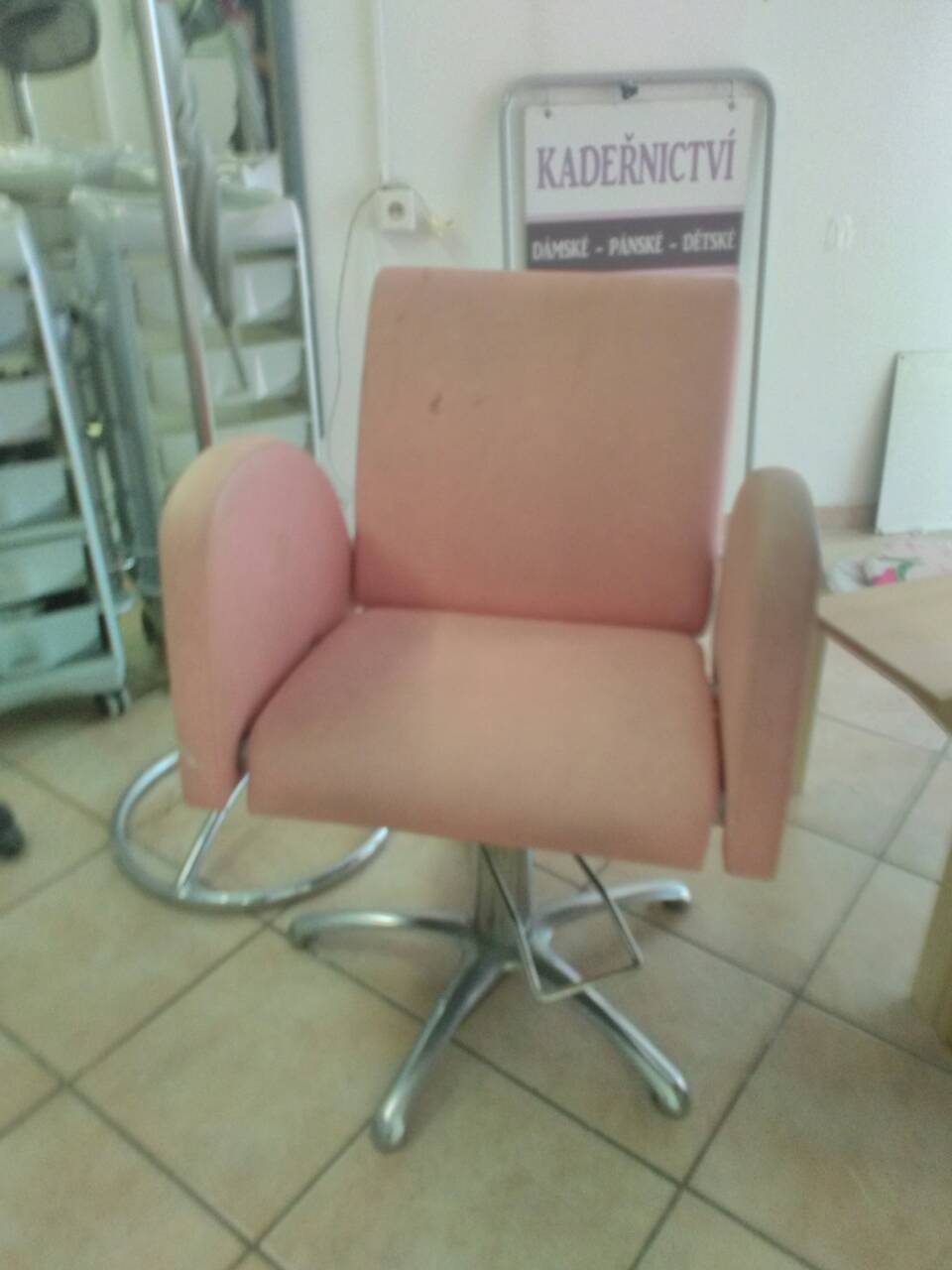 Prodám kadeřnické vybavení 3 roky používané. Sada obsahuje : mycí box (polohovatelný - mísa i nohy), 2x kadeřnická křesla (hydraulické), sušící helma, kadeřnický vozík, 2x regál na barvy, recepce (velký pult se šuplíkem a odkládacím prostorem), malý stolek, 2x velká zrcadla.